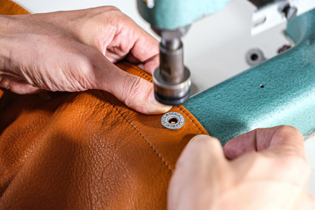 縫製が完了したボディにボタンホールを開け、最後にボタン、リベットを取り付ければ「OG-20 Steer Oil」は完成となる。