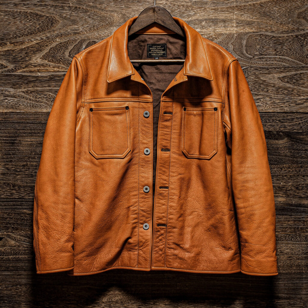 ダック生地で仕立てた「OG-7」というジャケットがある。裏地にブランケットを使った、防寒性が高いワークシャツスタイルの冬用JKTだ。非常に人気が高いこのジャケットを馬革で再現し、2023年「OG-20」を発表した。