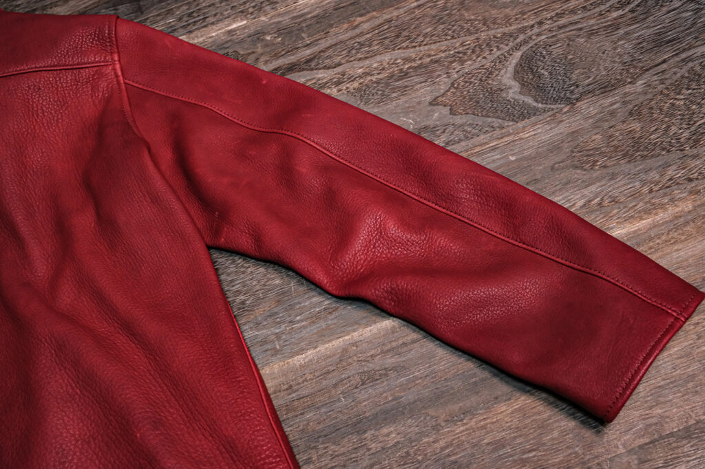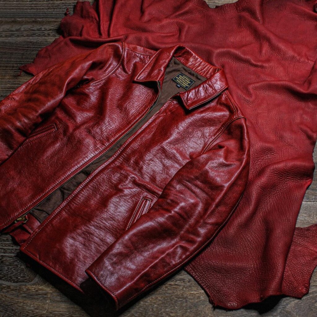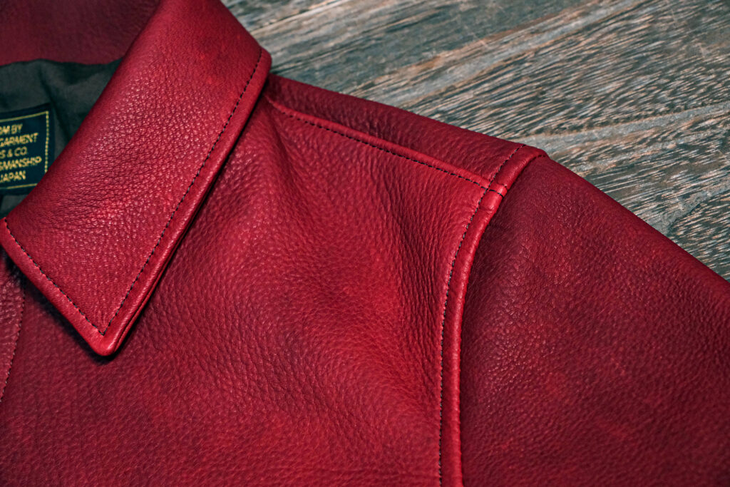 実際に赤馬の「OG-2」と並べてみたが、引けを取らない色味、質感、存在感。今はまだマットな質感だが、ジャケットに仕立て、着込むことで、赤馬同様の艶が手に入る。脳内イメージを超越した赤鹿の誕生に、ワクワクが止まらない。