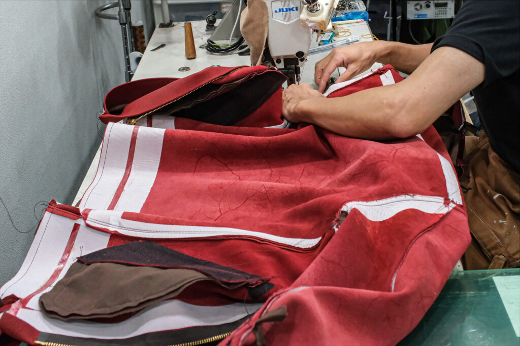 鹿革は非常に柔らかく、裁断時や縫製時に伸びやすいため、職人泣かせの素材と言われている。その柔らかさゆえ、着用による型崩れや伸びも発生しやすい。そこで硬さが異なる数種類の芯材を使い分け、各パーツを補強する必要がある。ジャケット完成時には見えない部分だが、しっかりと芯材で補強されたジャケットとそうでないジャケットは、5年後、10年後に大きな差が現れる。