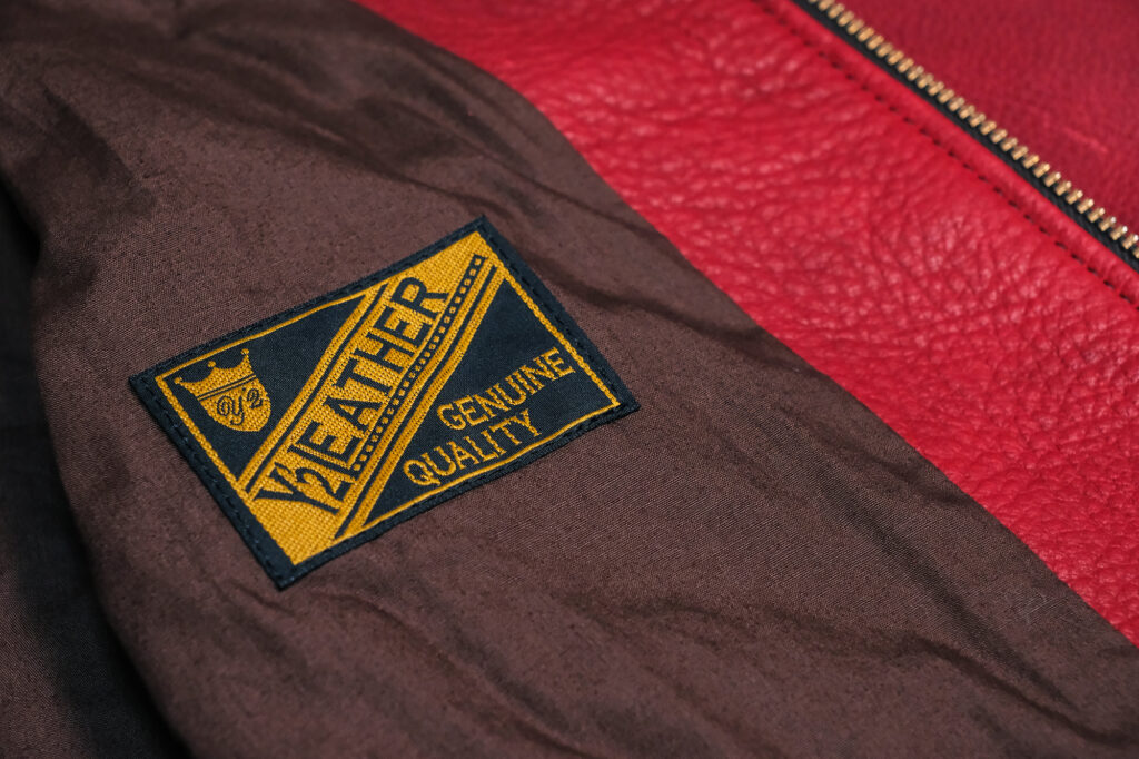 左身頃内側には、生産ファクトリーである「Y’2 LEATHER」のラベル。高い技術を有した職人によるハンドメイド、高品質ジャケットの証でもある。